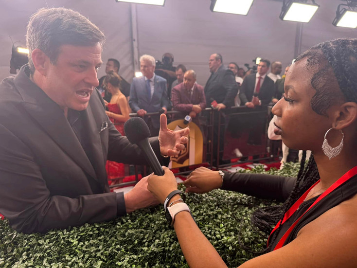 She had incredible conversations about mentorship with Terry Crews, Damar Hamlin, Rookie of the Year Jayden Daniels, Raising Cane’s Todd Graves and SO MANY MORE! From NFL greats to Hollywood stars, the interviews kept coming, and Skye handled them like a pro.